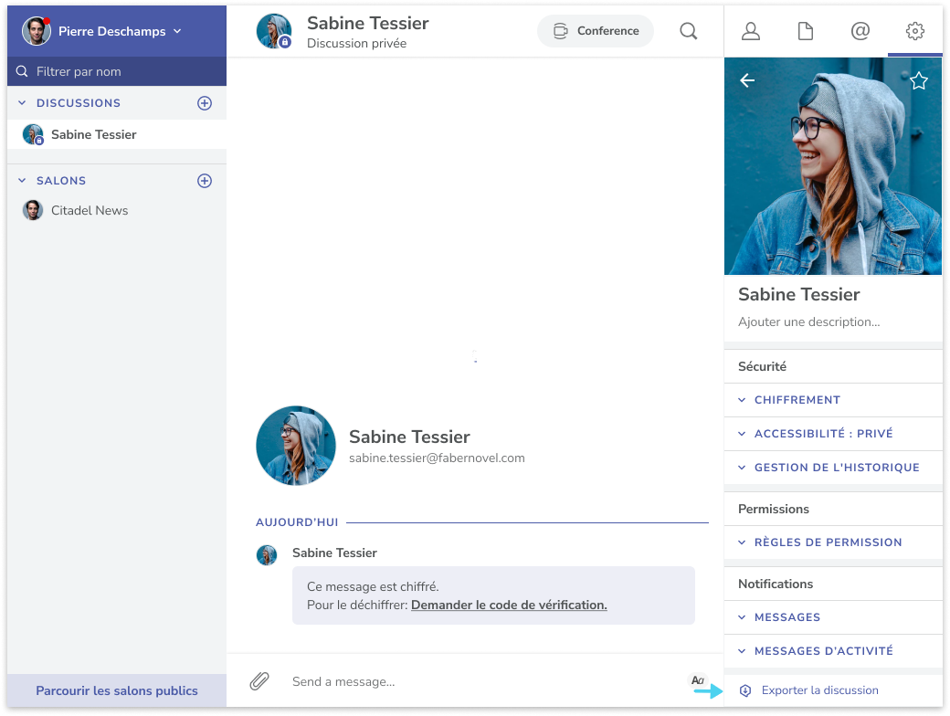 With this feature, you'll be able to export any content (messages, service messages, attachments (optional), links, etc.) from an end-to-end encrypted or non-end-to-end encrypted room/chat.