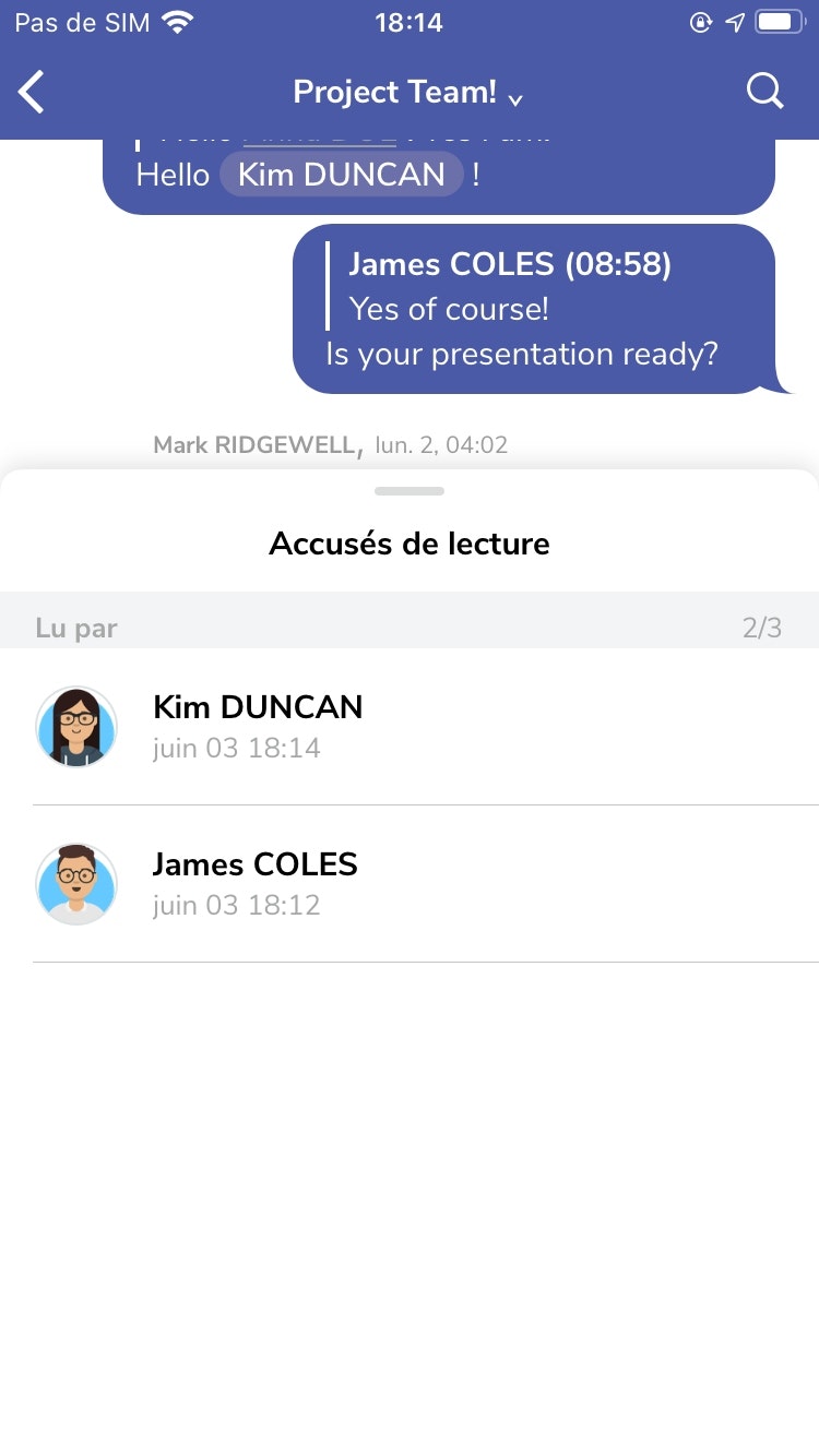 On Mobile, by clicking on these avatars you can have the details of the acknowledgements of reception (user and time of reading).