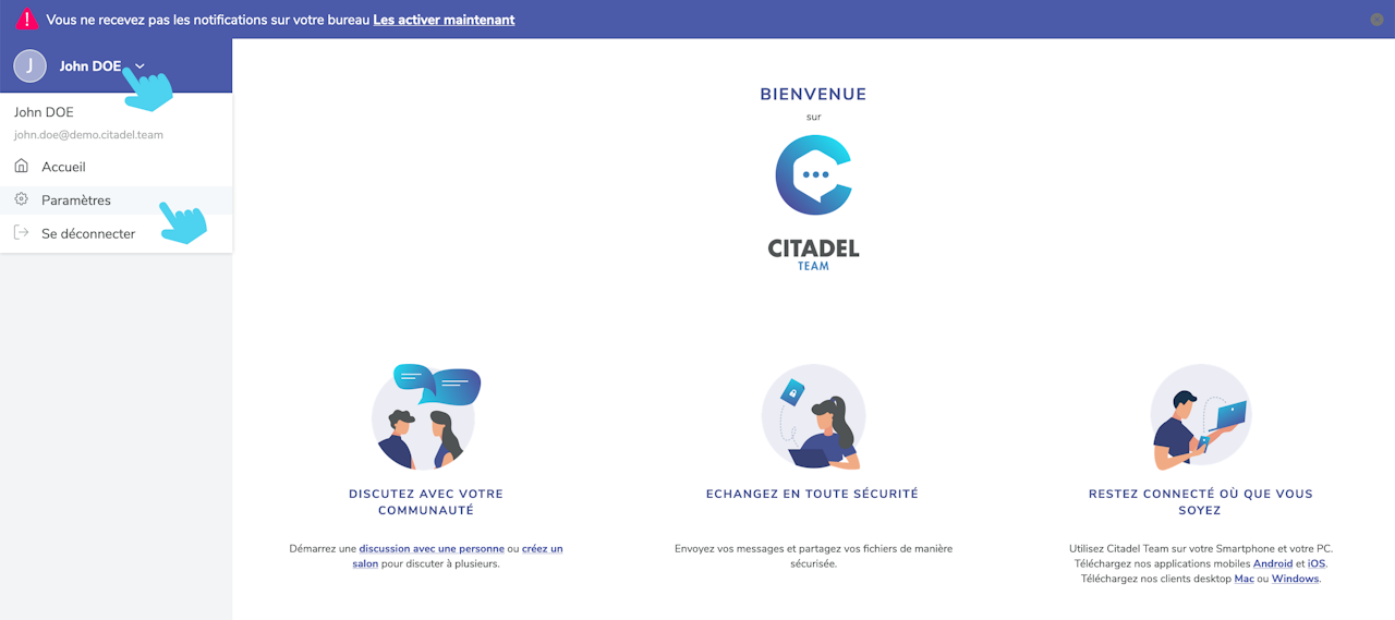 - Cliquer sur "Paramètres"