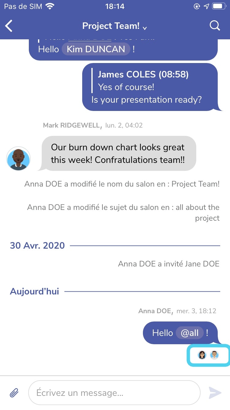 Sur Mobile, en cliquant sur ces avatars vous pourrez avoir le détails des accusés de réceptions (Utilisateur, et heure de lecture)