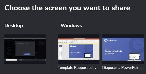 - Lancer le diaporama avant de partager votre écran puis partager la fenêtre du Diaporama PowerPoint